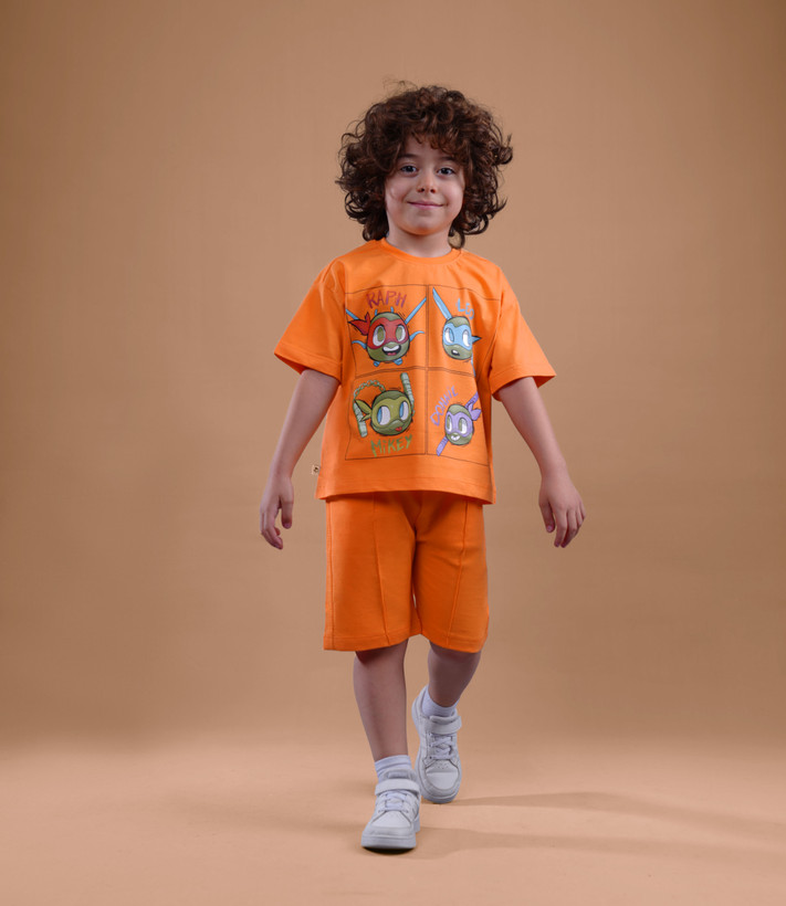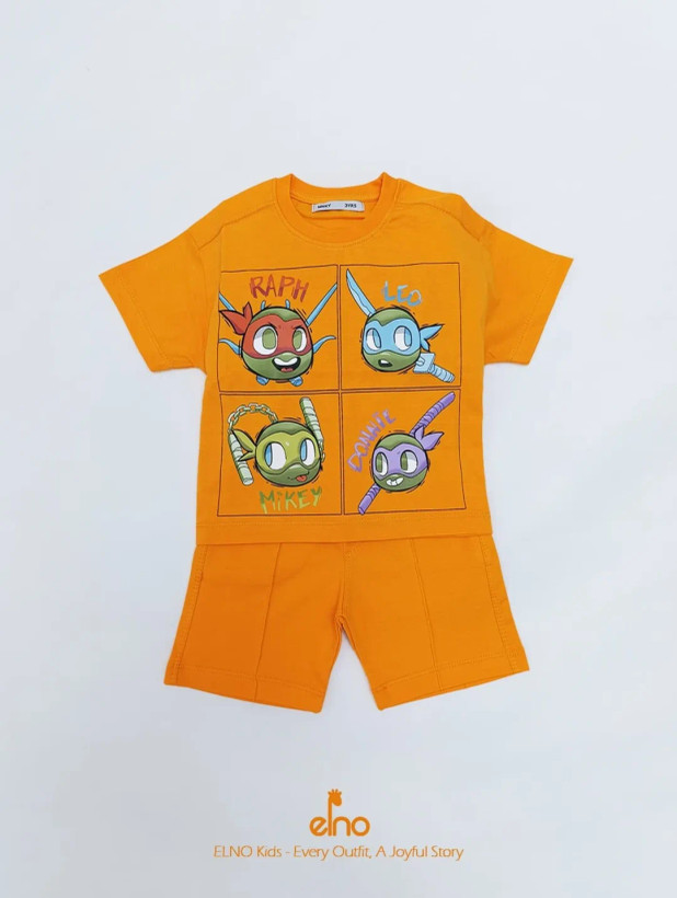 ست تیشرت شلوارک نخ پنبه طرح لاک پشتهای نینجا